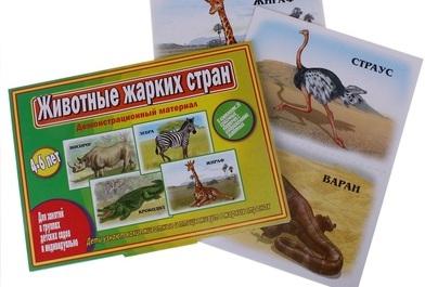 Демонстрационный материал о животных жарких стран. С помощью этого материала дети смогут закрепить знания о животных и обогатить активный словарь названиями экзотических зверей, узнать об особенностях их места жительства, сходстве и различиях.
