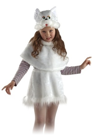 Отличный карнавальный костюм для самой сильной девчонки на празднике! Наряд кошечка белая - это белоснежное платьице с изящной отделкой, широкая пелерина и тематическая маска-шапочка кошки.