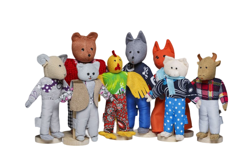 Набор кукол известной сказки предназначен для театрально-постановочной деятельности дошкольников. Достаточно надеть петли на ногах у кукол на детские пальчики, и кукла может шагать.