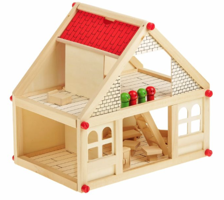 Комплектность: 4 фигурки, кровать, 2 кресла, кушетка, шкаф, 3 стола, табурет, диван, мойка, ванна. Материал: дерево Возраст: от 3 лет