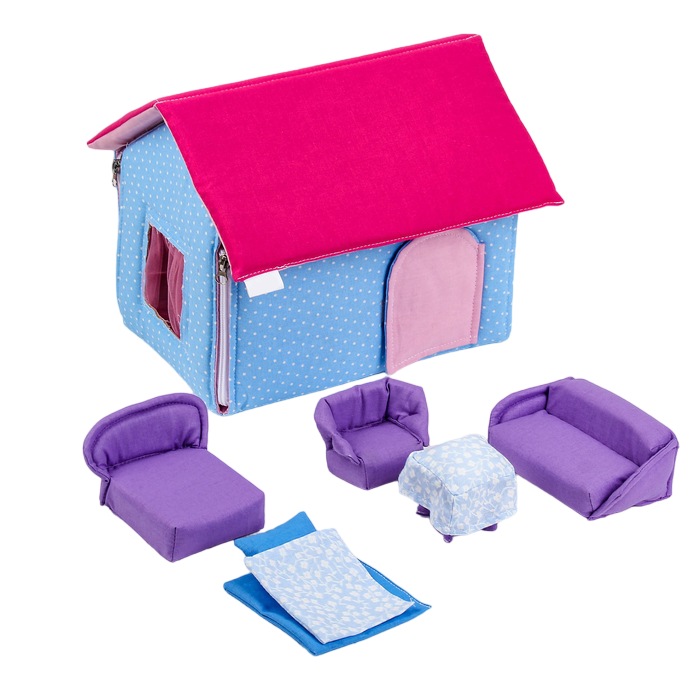 Полноценный игровой набор с двумя открывающимися окнами и дверью. В комплекте идет мебель: кровать, диван, постелька, кресло, стол.