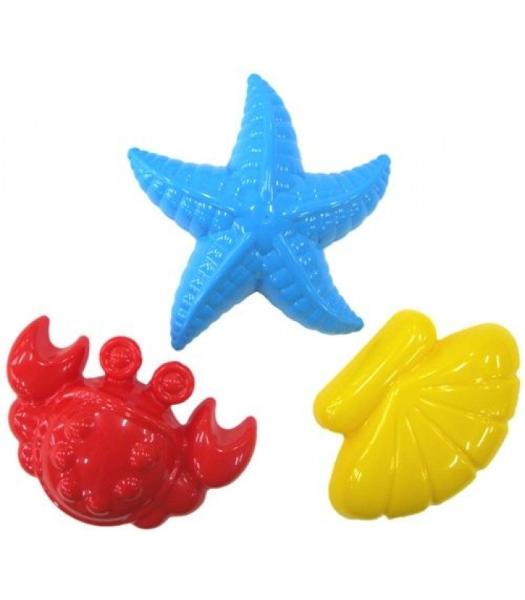 Набор для игр в песочнице порадует малышей. В комплекте 3 формочки в виде краба, морской звезды, ракушки.