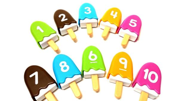 Набор из 10 пластиковых эскимо поможет малышам быстрее выучить числа: на съемной “глазури” каждого эскимо нанесена крупная цифра от 1 до 10, а под глазурью нарисованы точки, их количество соответствует изображенной цифре. Дети могут учиться выкладывать эскимо в нужном порядке, сортировать их возрастанию и убыванию, делить на четные и нечетные, пересчитывать точки и т.д.